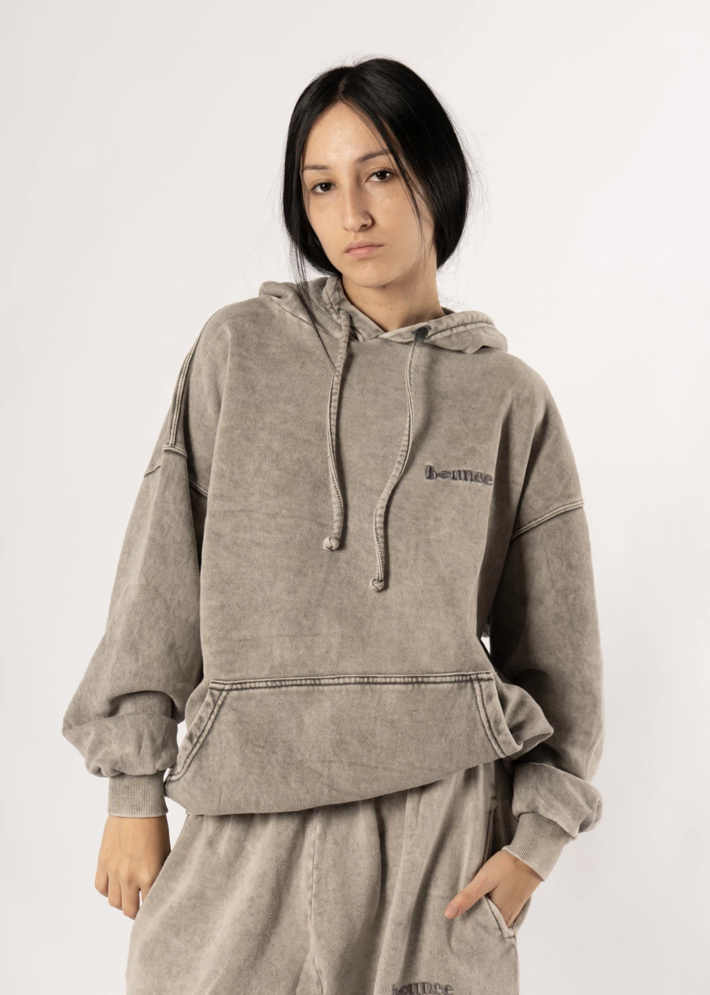 Con proceso de teñido, lavado y desgastado.