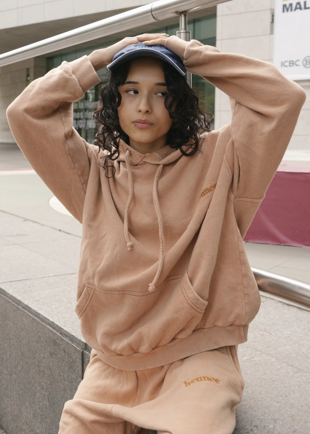 Canguro oversize frizado. Con proceso de teñido, lavado y desgastado.